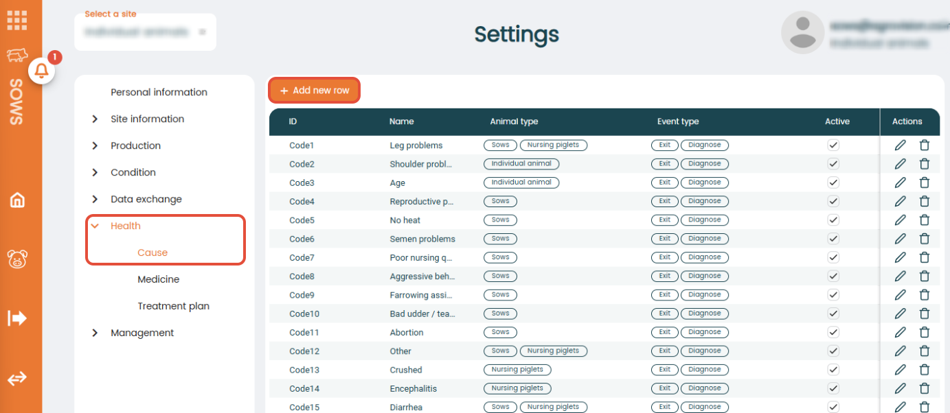 - "Animal type": Select the animal type for which this cause can be used. The cause will then appear in the list of causes only for the selected animal type (e.g. suckling piglets). It is also possible to select multiple animal types for one cause.