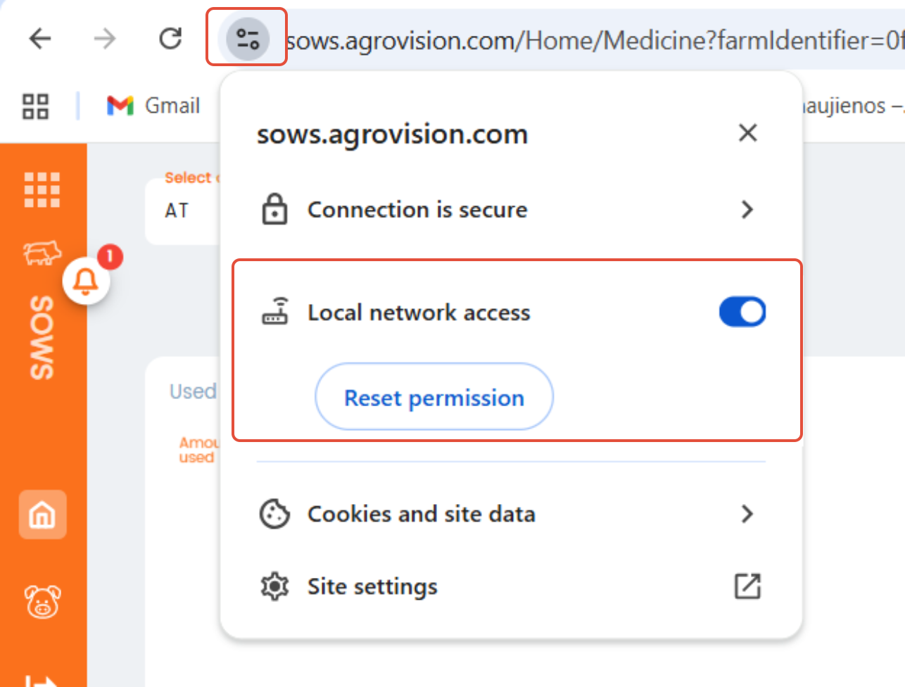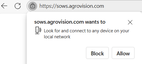If you are trying to start AgroVision Sows but all you see is a white screen. Go to the site information icon next to the URL bar and click on it.