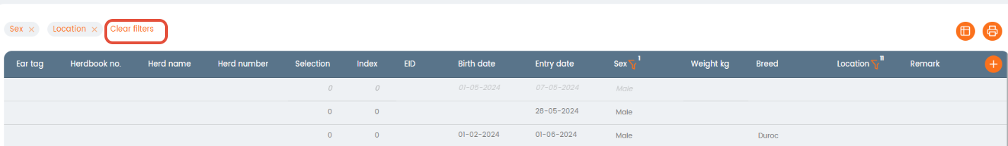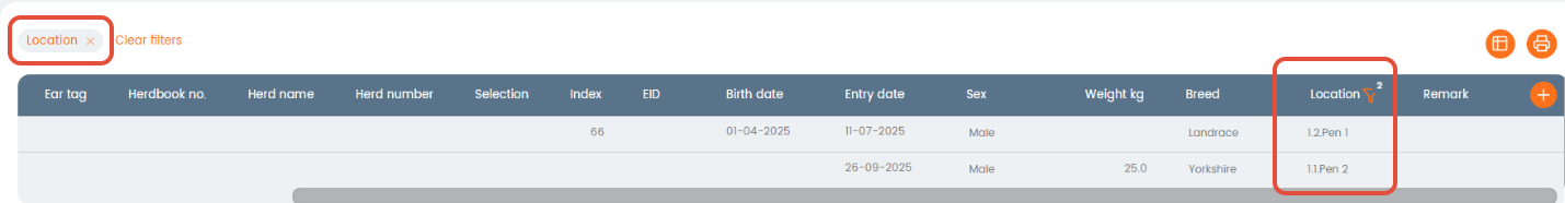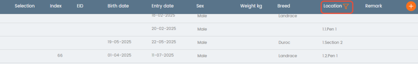 In every data entry or report screen you will find a filter line next to the column headings. Hover your mouse over the heading of the column and the filter sign will appear. In this example, the filter is applied to "Location".