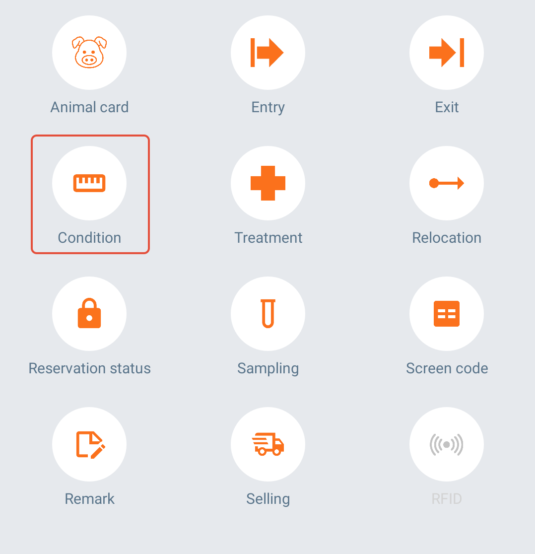 Before you can register conditions in the AgroVision mobile app, the conditions have to be set up in AgroVision Sows web application. Read more on how to set this up.