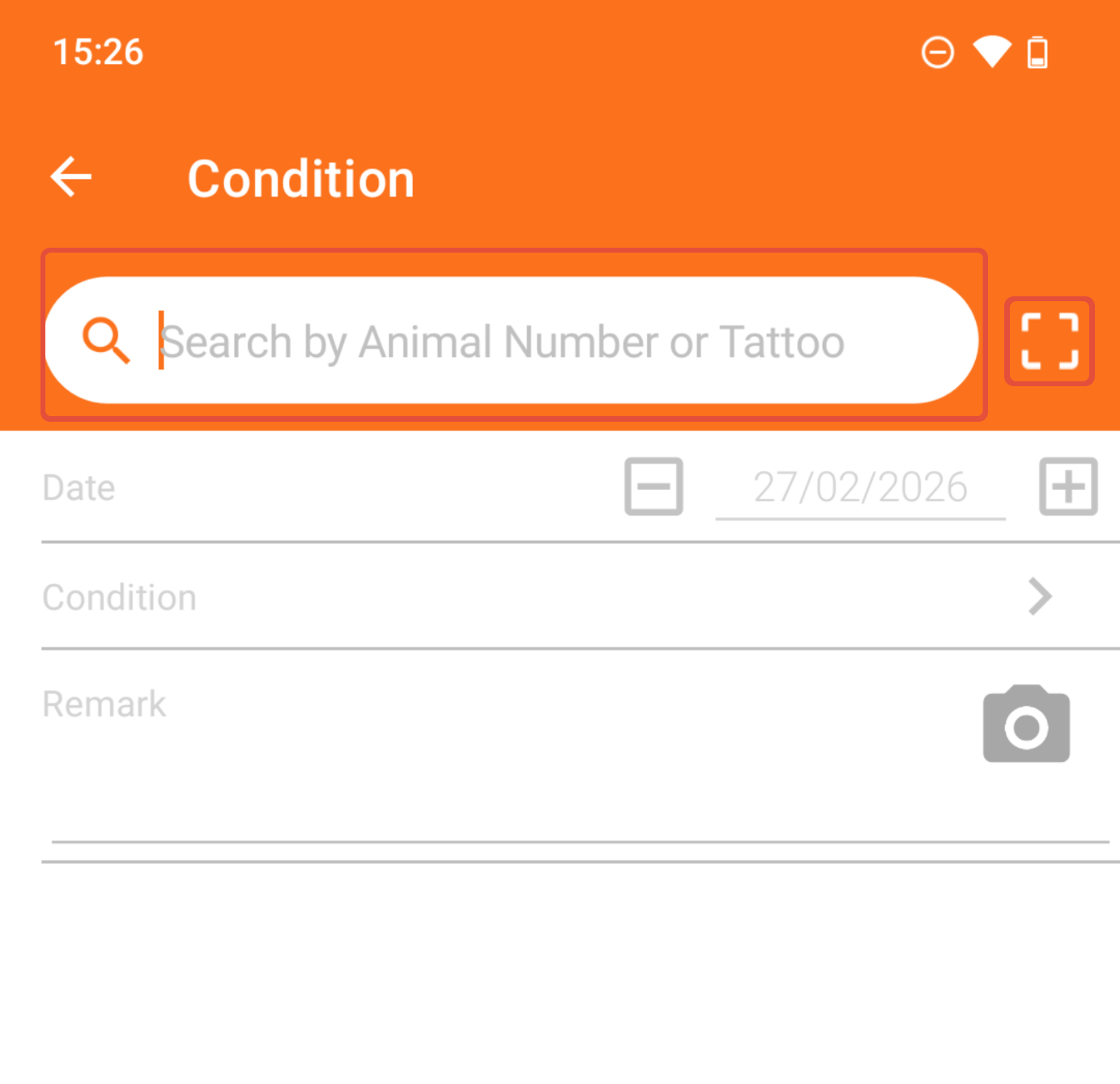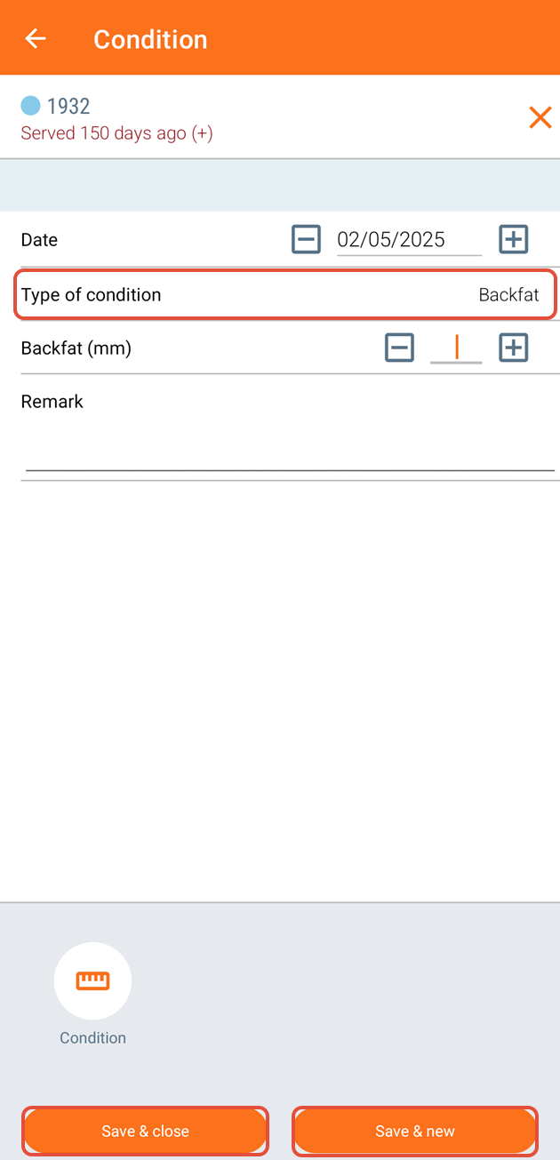 Search or scan the animal of which you want to register a condition.
