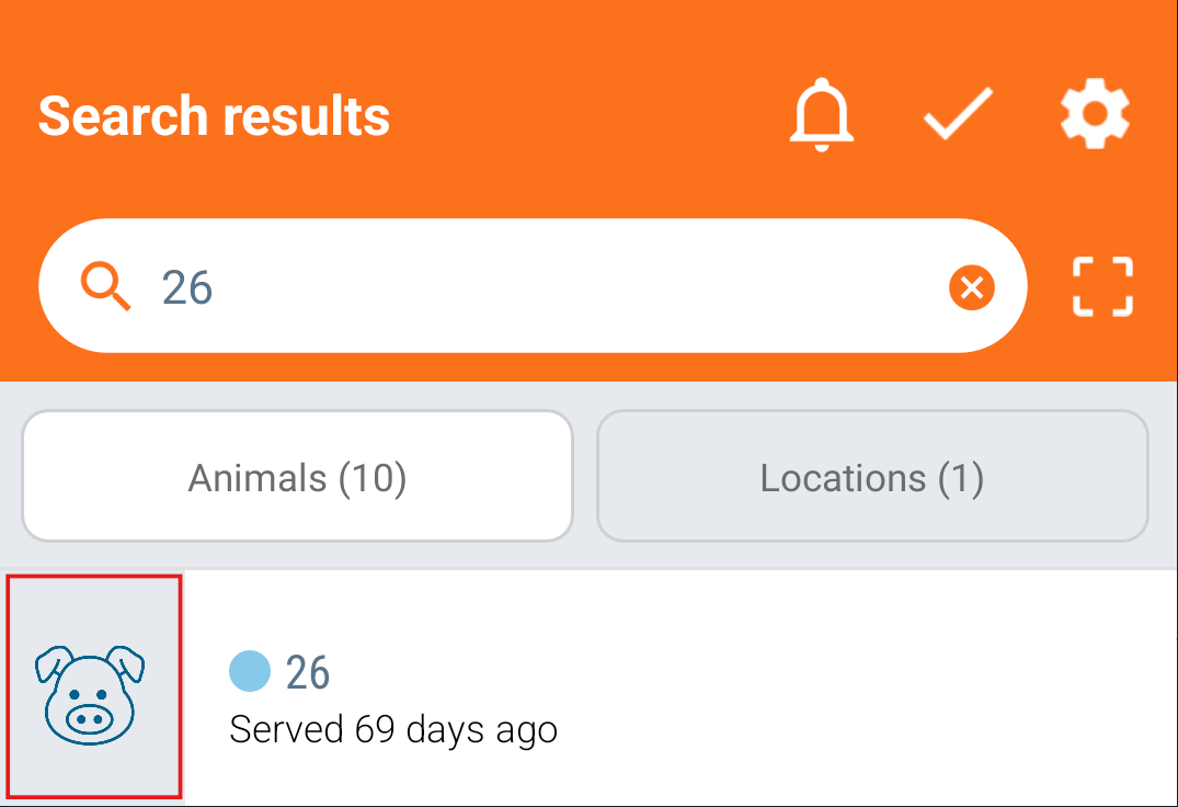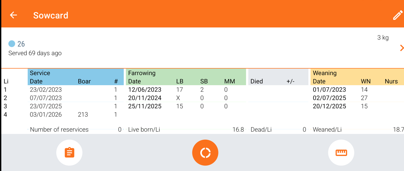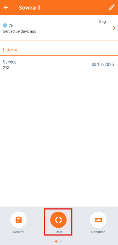 Tap on the pig head and a new screen will be shown with the current litter's information. If you want the full animal card, you can press the "Litter" icon at the bottom.