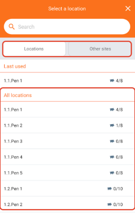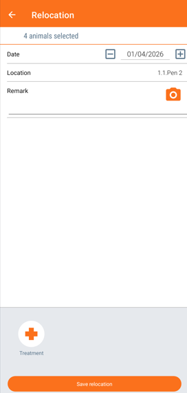 After selecting "Relocation", a list of available locations will appear. Choose the location where the animals should be moved to. You can also move animals to another site by selecting "Other sites".