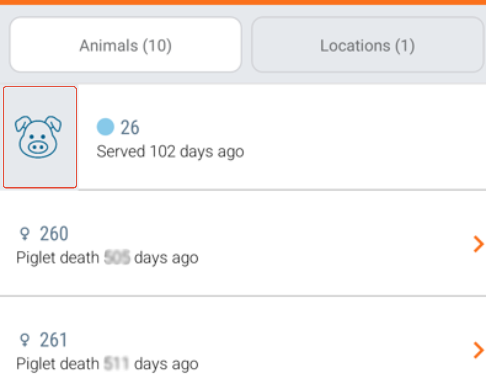 - A "Pig icon" will appear to open the animal card. Click to view "Animal card".