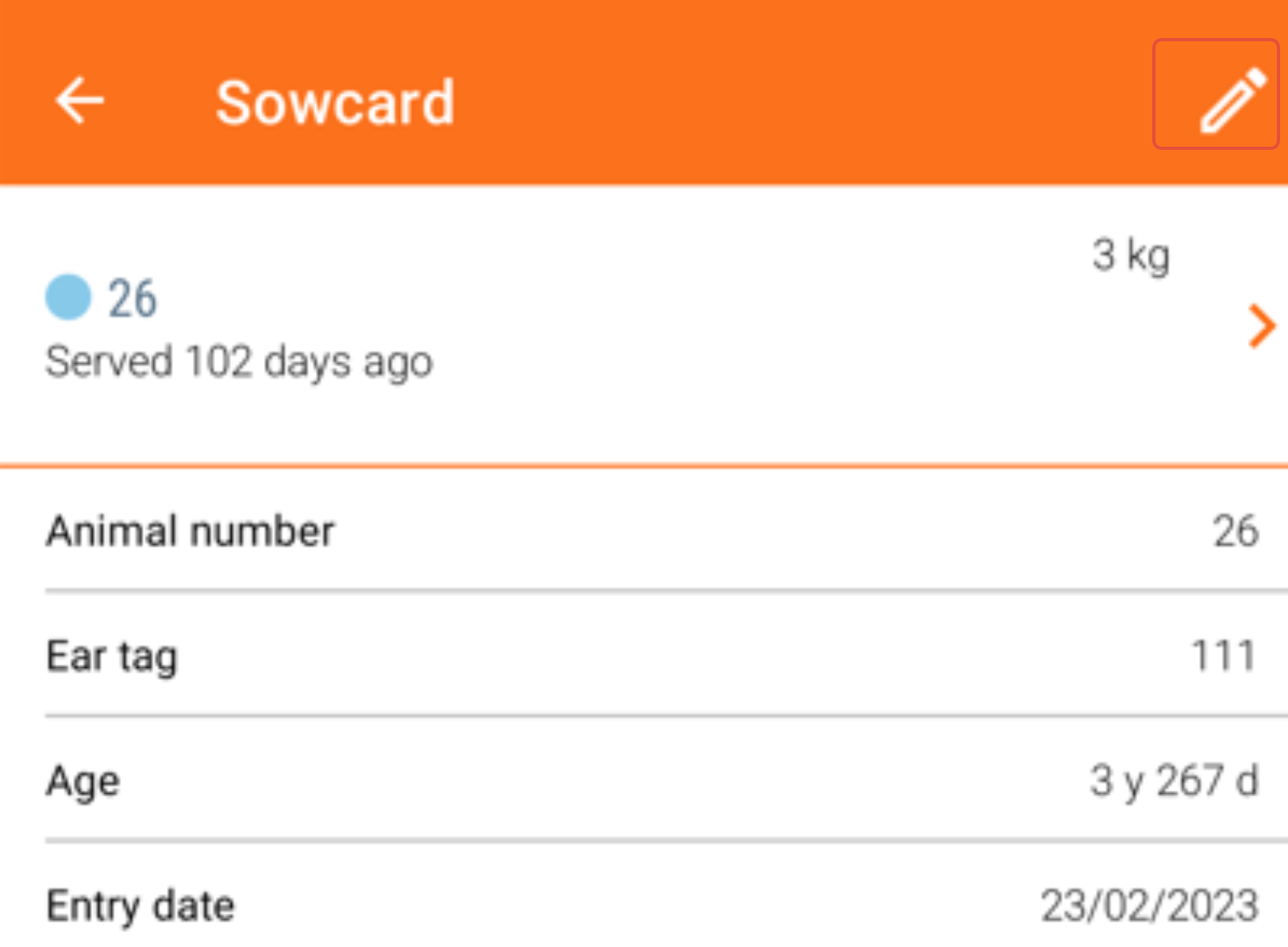 - Tap the "Pencil icon" on the animal card
