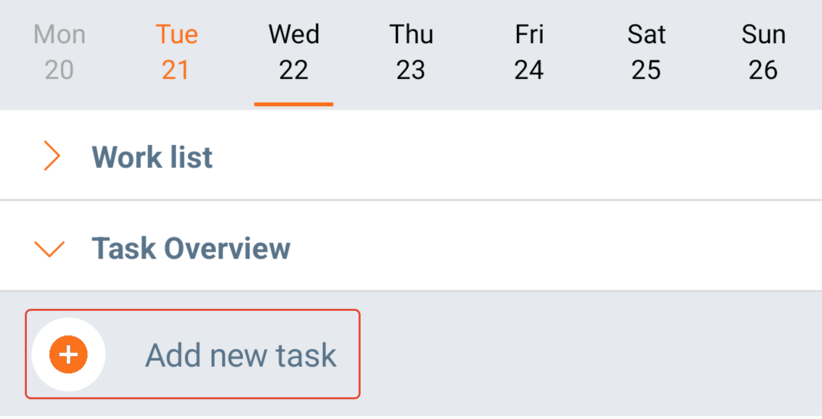 You can also create a new task directly in the mobile app by clicking "Add new task" on the home screen under "Task Overview".