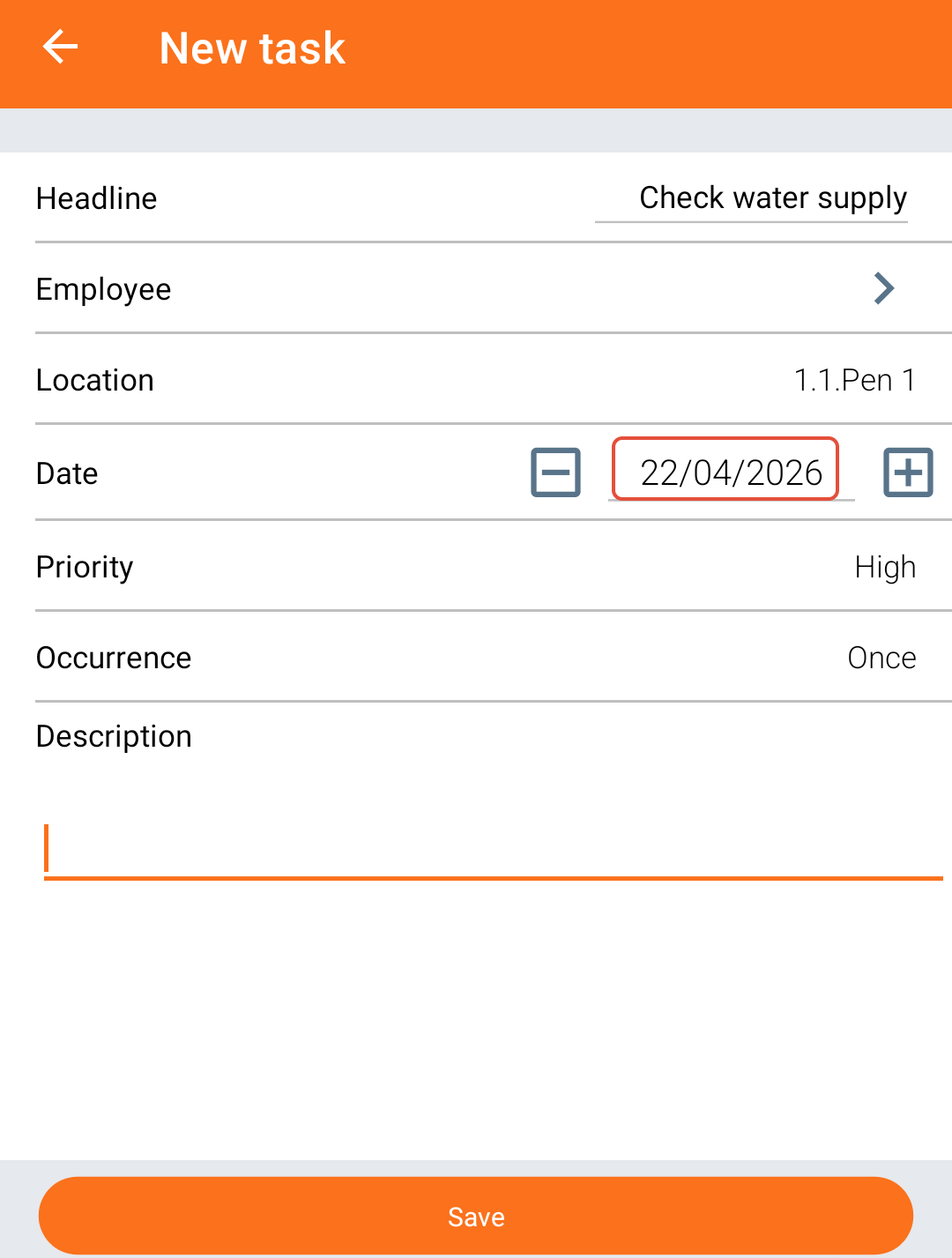 Enter the task details and click "Save". By default, the date will match the one selected in the calendar on the home screen, but you can change it if needed.